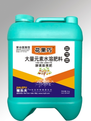 稼乐夫花果巧,聚谷氨酸悬浮液体肥,高钾型膨果水溶肥,是针对果树、蔬菜、瓜果等作物的落花落果、坐果难、果实小、裂果、空心果、果实畸形、产量低、着色不均匀、果实品质差、不耐储藏等一系列问题研发的一款有机无机水溶肥。